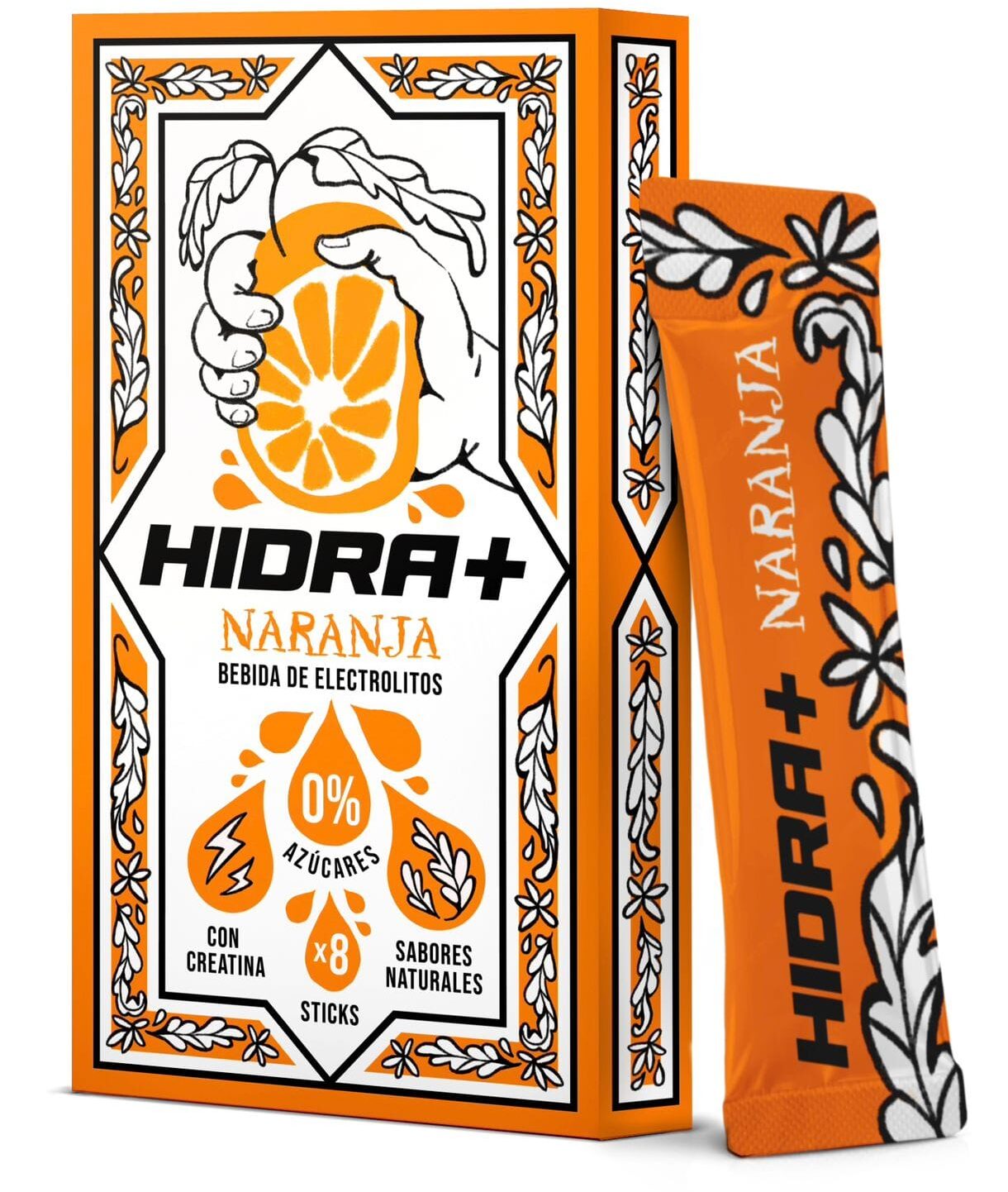 HIDRA+ es un complemento alimenticio en polvo con electrolitos, creatina y sabor natural a naranja.
